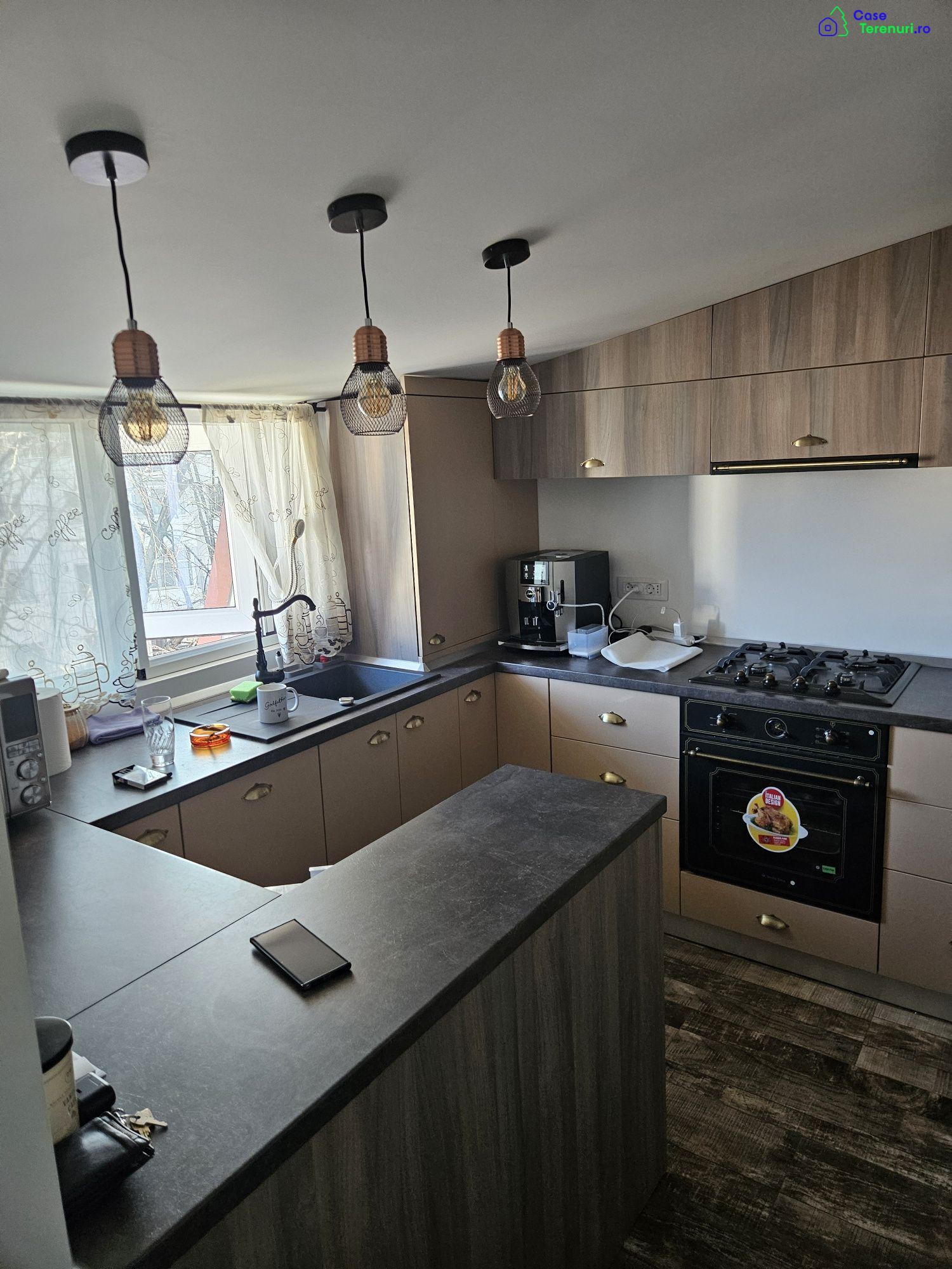 Apartament situat la confecții camin,mansarda ,nu e garsoniera e Apartament cu doua camere revovat in 2023 totul este nou,imbunatatiri in tot apartamentul,il dau cu tot ce este in el:Baie renovata cu cabina de dus si instalatie nouaBucatarie facuta la comanda cu tot ce este in eaCentrala nouaGresie,frigider incorporat in mobila de bucatarieHotaMasina de spalat vaseMasina de spalat haineCuptor microunde sageMasina de cafea JavaUsi culisateParchet nouCanapeaTelevizorInternetUsa prin culisareDormitor tot nou facut la comandaPat dublu cu saltea nouDulapuri pentru haineEste pentru cine vrea numai sa puna haina in cui si sa locuiascaApartamentu are 39 de metri patratiPret 60000de euro negociabil