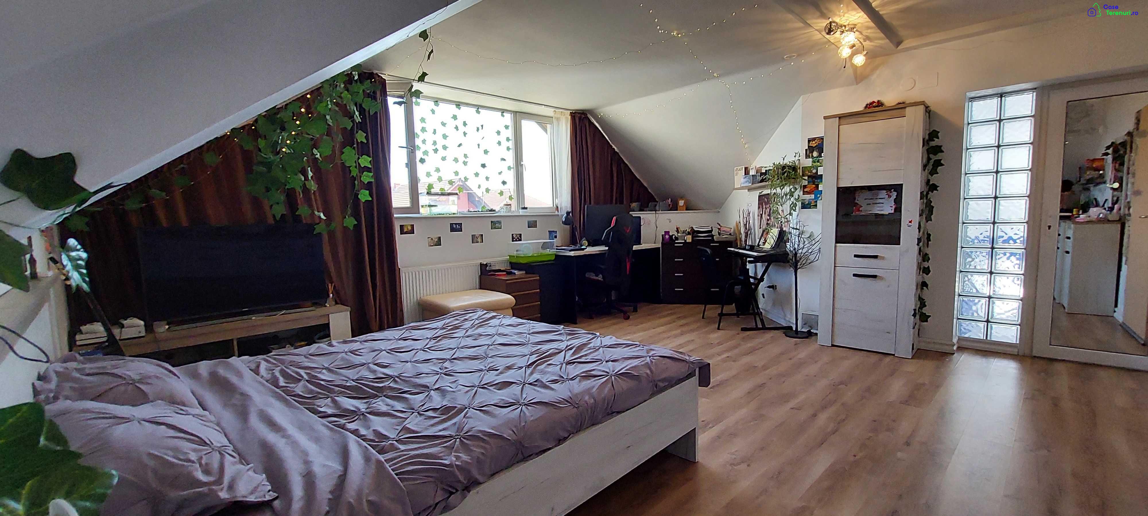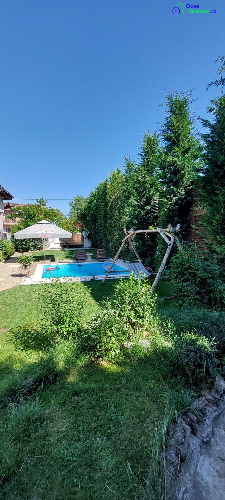 Proprietatea dispune de finisaje de calitate superioară și este formată din demisol, parter și mansarda, fiind amplasată pe un teren de 655 mp , cu front stradal de 22 ml și amprenta la sol de 155 mp . Accesul cu autoturismul se face pe poartă automatizată cu telecomanda . Demisolul casei este compus din garaj spațios cu ușă automatizată, apartament cu grup sanitar propriu, cameră tehnică , spălătorie / uscătorie haine și magazie . Parterul casei este format din bucătărie, living spațios cu șemineu mare îmbrăcat în piartă naturală, cameră de oaspeți,dressing de intrare , baie și terasă cu vedere spre curte si piscină. Etajul casei este format din: - dormitor matrimonial în suprafață de 50 mp cu baie si dressing proprii - dormitor secundar cu baie si dressing proprii - hol. Curtea este o oază de relaxare, iluminata ambiental , amenajată cu plante ornamentale ,gazon , 50 de brazi de 4-7m care înconjoară curtea .Totul este irigat prin sistem automatizat . Curtea mai dispune și de piatră naturală, pavaj , un iaz cu nuferi si cascadă cu sistem complet se filtrare și recirculare, dar si o piscina incalzita ,(cu pompă de caldură), care dispune de sistem complet de filtrare. Incălzirea este asigurată printr-o centrală pe gaz Buderus de ultima generație cu boiler de 800 litri. În apropiere se afla un magazin Lidl , stație de tramvai .Aproape de centrul Aradului și de pădurea Ceala . Proprietatea se vinde nemobilată.