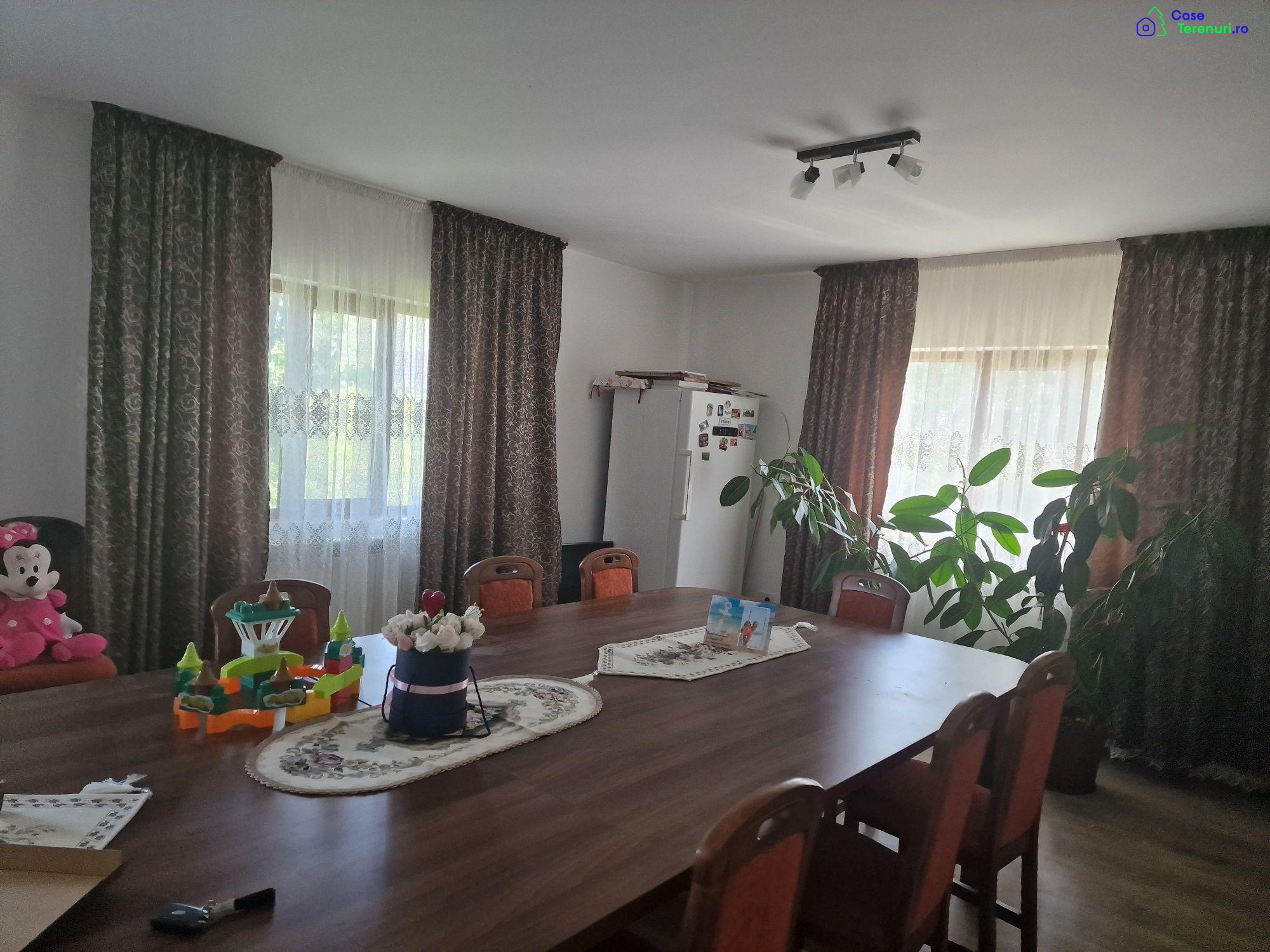 Vilă de 300 m2 cu teren de 4450 m2Parter,etaj plus mansardă6 camere + mansardă neterminată2 bai,bucatarie,living,terasă.Două întrări (față-spate)Cortină vie 60 mLivadă de meri în fața caseiBeci+garaj,bucatarie de vară.În curtea din spate:Livadă de cireși,pruni,peri,aluni,zmeura,muri,coacăze,6 nuci mari.anexa pasari+porci,hambar,depozit lemne.Centrală pe lemne.izolată exterior.