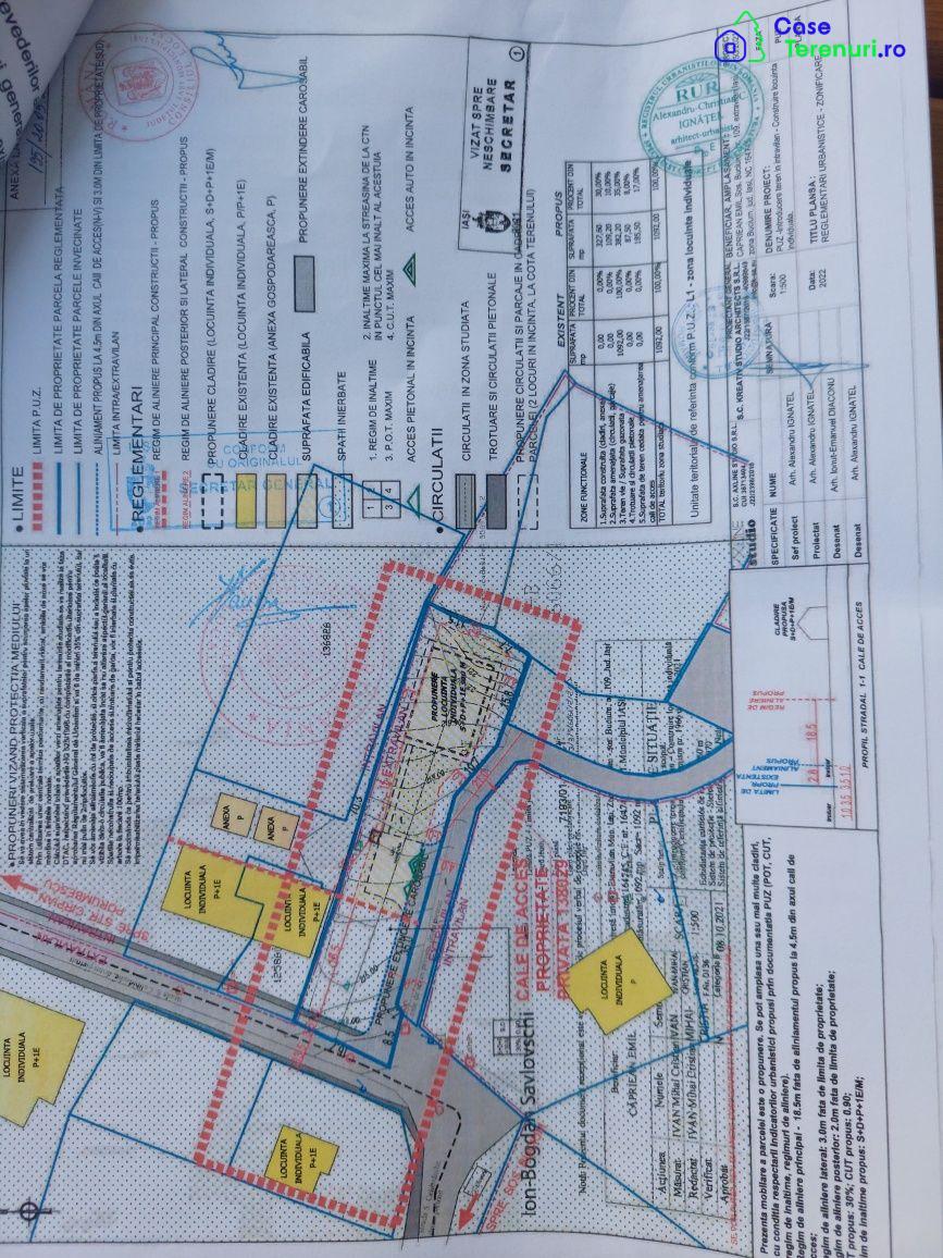 BUCIUM-IASI INTRAVILAN ,1090 mp teren amplasat in proximitate Pensiunea Shamrok Inn ,aproape de DN IS- VS ,zona rezidentiala ,cu vedere panoramica asupra orasului ,PUZ aprobat POT 30% CUT 0,9% ,D+P+1 E/M , TOATE UTILITATIILE PE PROPRIETATE (apa,gaz,canalizare...etc) OCAZIE ,PRET 95000 EUR
