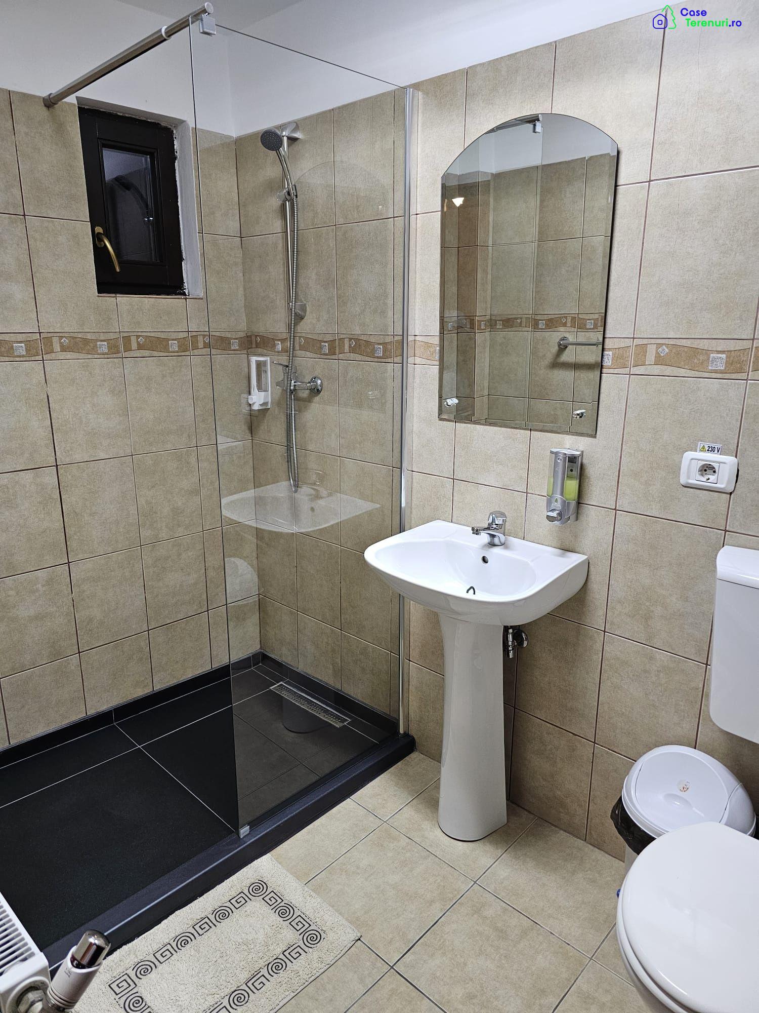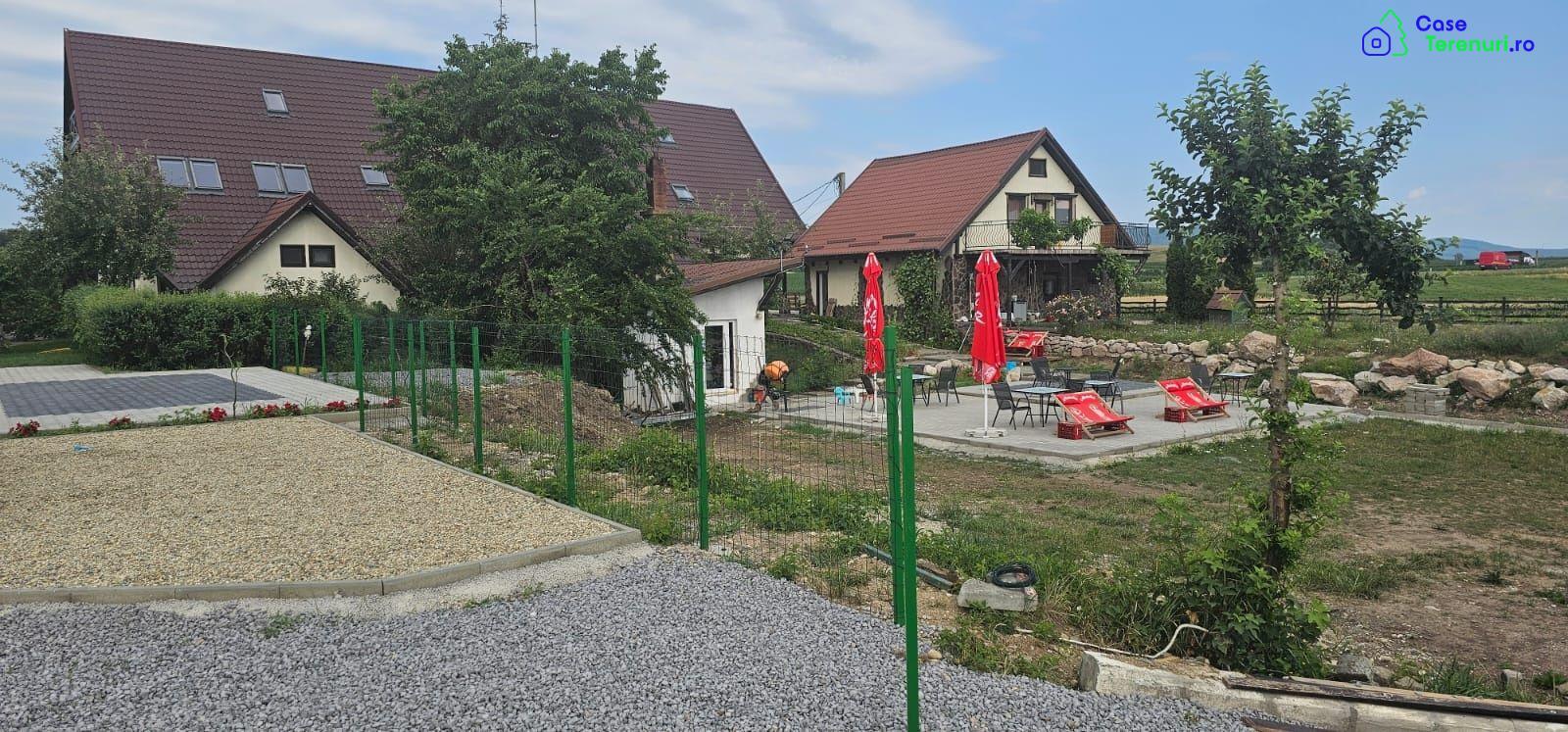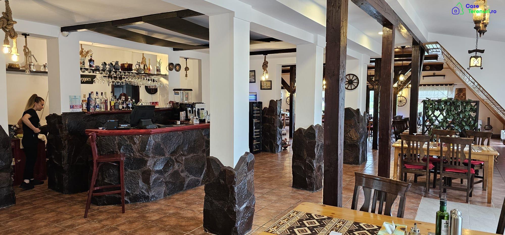 Proprietar vând pensiune D+P+M1+M2 cu 8 camere si restaurant, autorizate, in suprafata de 800 mp utili, situata pe malul lacului cu acces direct din drumul national, la 22 km de Brașov la iesire din Rotbav.Imobilul recent renovat, se află pe un teren in suprafață de 5000 mp fara vecini, pretabil pentru evenimente in aer liber cu view superb pe malul lacului.Terenul este amenajat cu spatii verzi, terasa, parcare asfaltata.Proprietatea este racordata la reteaua electrica 380V, sursa proprie de apa, incalzire si apa calda cu pompe de căldură Nibe cu ventiloconvectoare pentru climatizare.In pret intra o casa cu destinatia locuinta de serviciu P+M, in suprafață de 164mp si o cladire cu destinatie spatiu tehnic in suprafata de 35 mp.