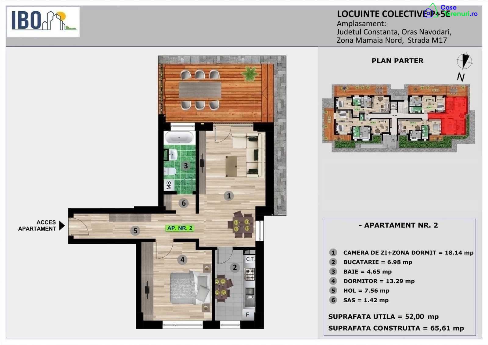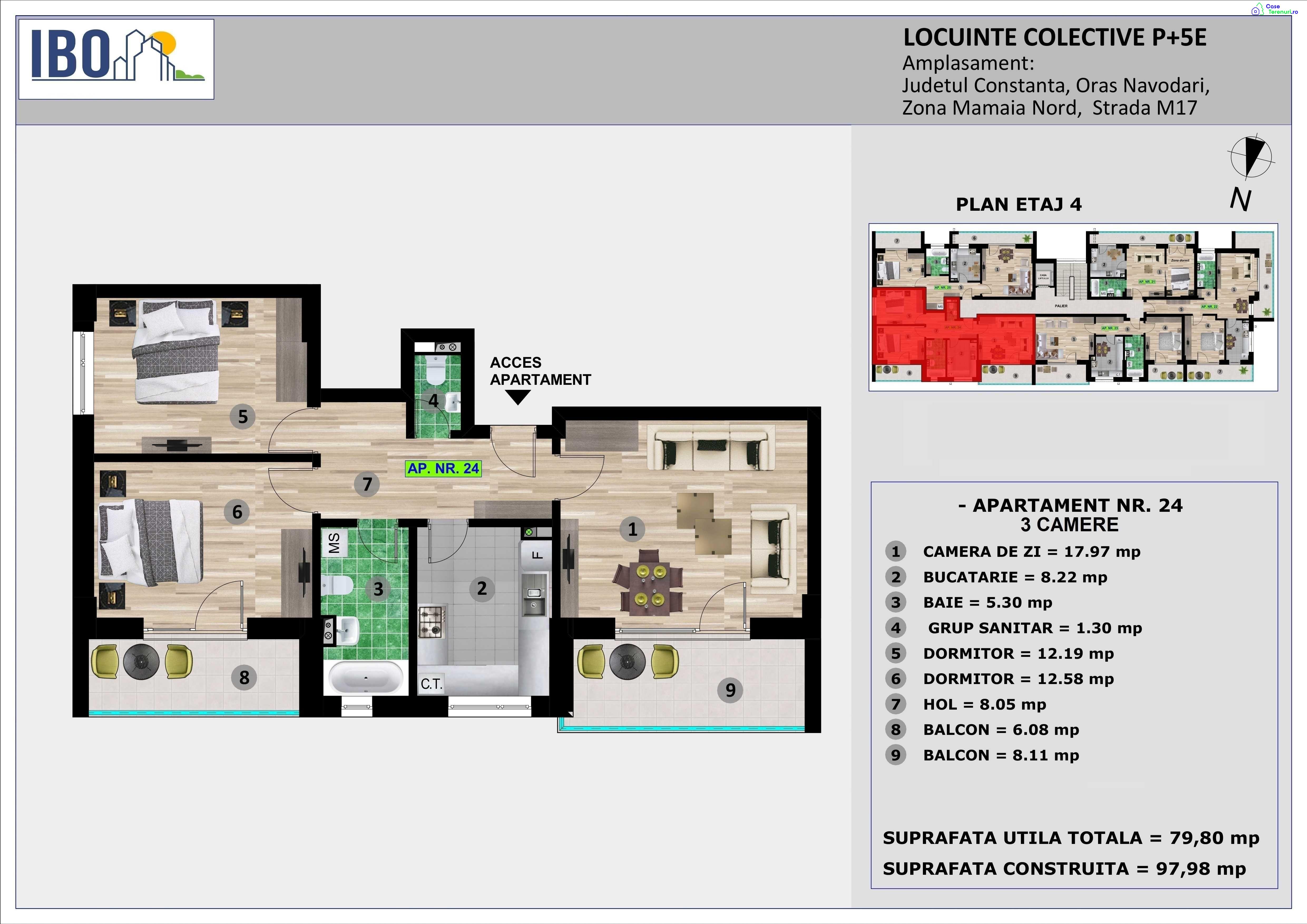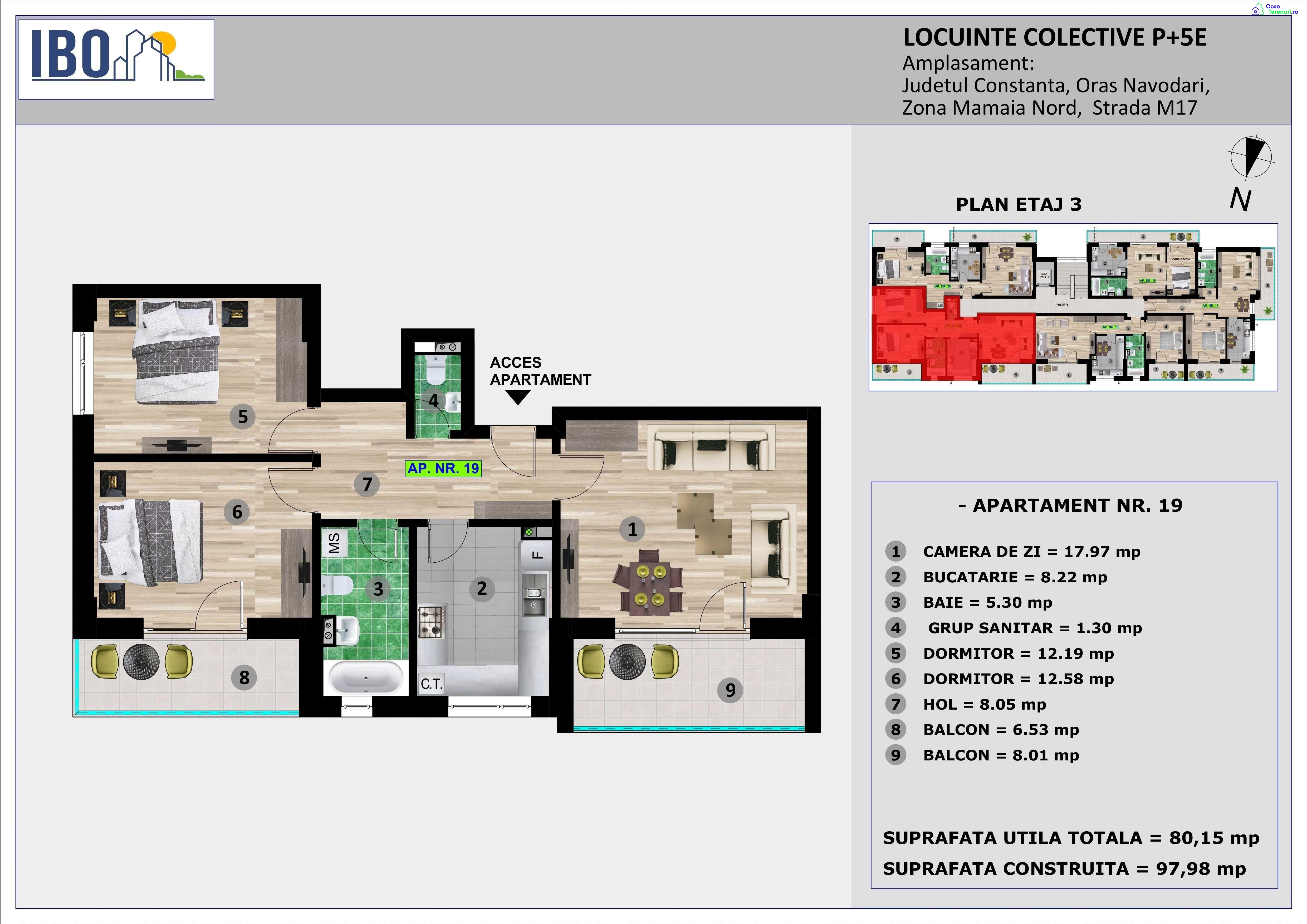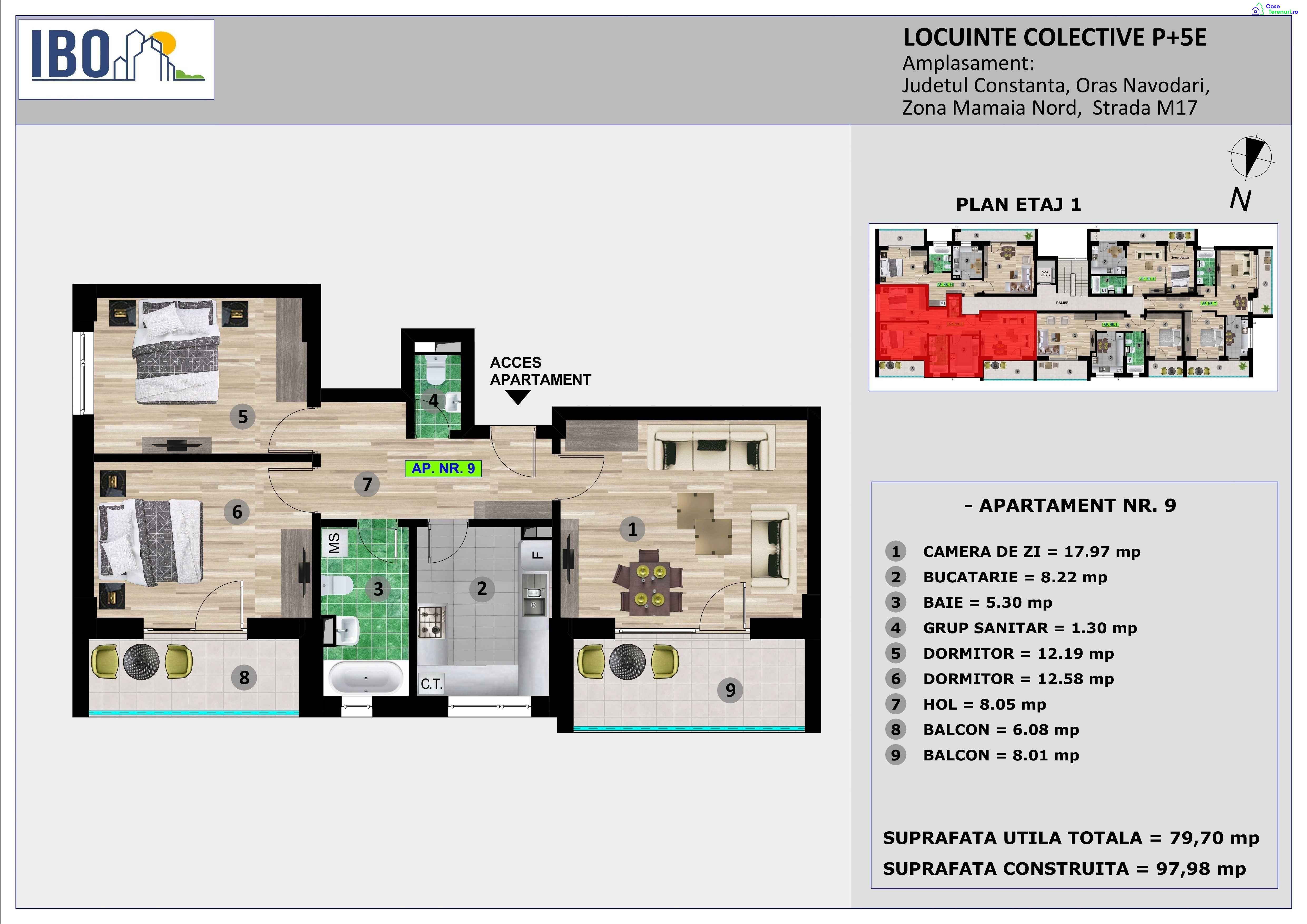 IBO M17www.rezidentialeconstanta.roTEL: 07********0707********26Pentru plata integrala la acest moment preturile incep de la 69.160 EUR pentru apartamentele de 2 camere si 87.780 pentru cele cu 3 camere.MODALITĂȚI DE PLATĂ :- plată integrala la acest moment- plată prin credit ipotecar/bancar – avans 30% din pretul apartamentului- plată în rate la dezvoltator pe 3 ani - avans 30% din pretul apartamentului , iar diferenta in rate egale pe 36 de luni .Proiectul IBO M17 este destinat persoanelor care își doresc să locuiască sau sa investească într-un apartament situat într-o zonă exclusivistă din Mamaia Nord, acesta fiind compus din apartamente cu 2 și 3 camere.Imobilul M 17 , se află in Mamaia Sat pe strada M17 la o distanţă de 350m fată de Lac si canalul Dunare - Marea Neagra, o zona linistită, ideală pentru relaxare , departe de zgomotul urban , o zonă complet sistematizată, cu toate utilitatile.