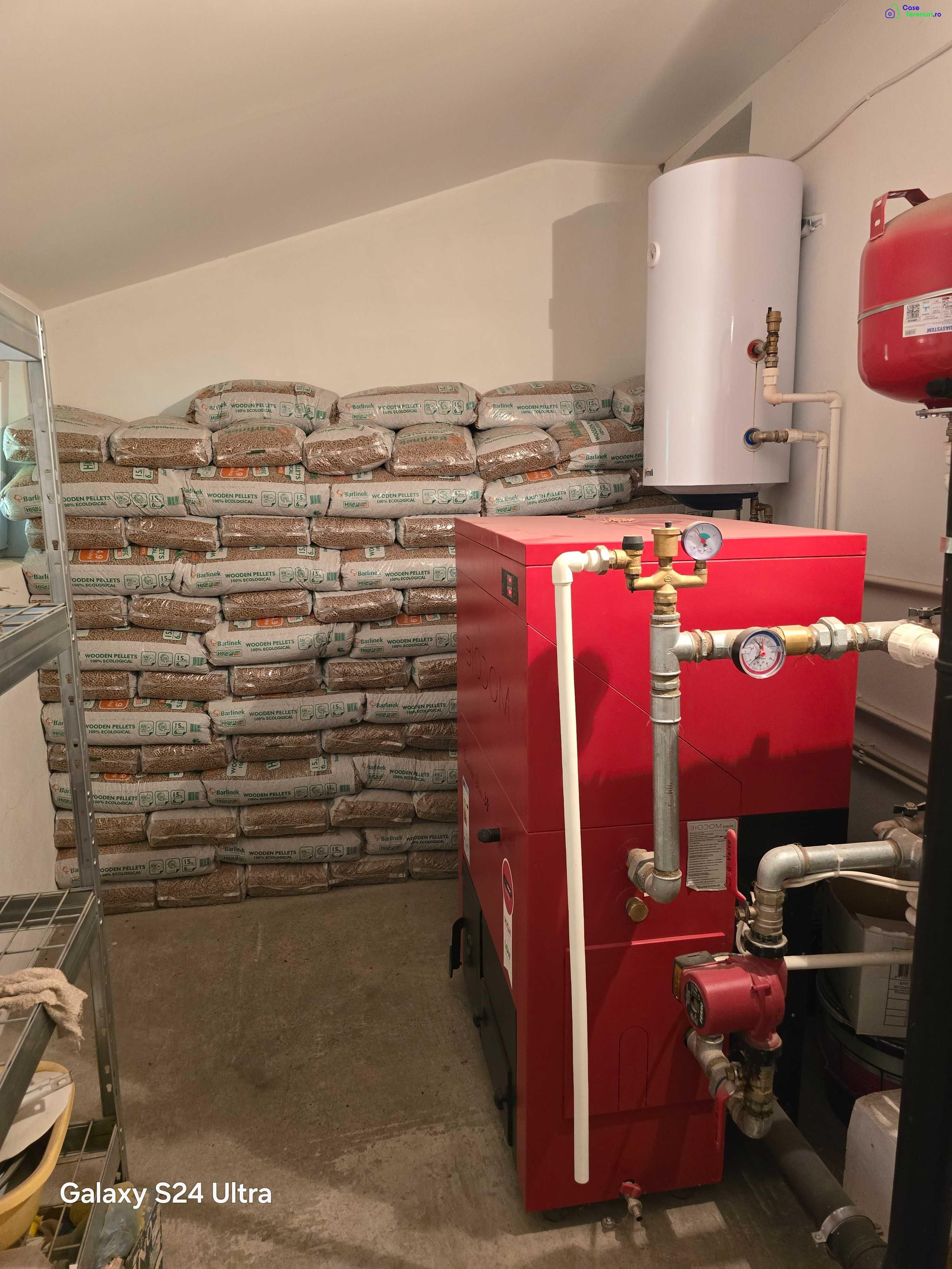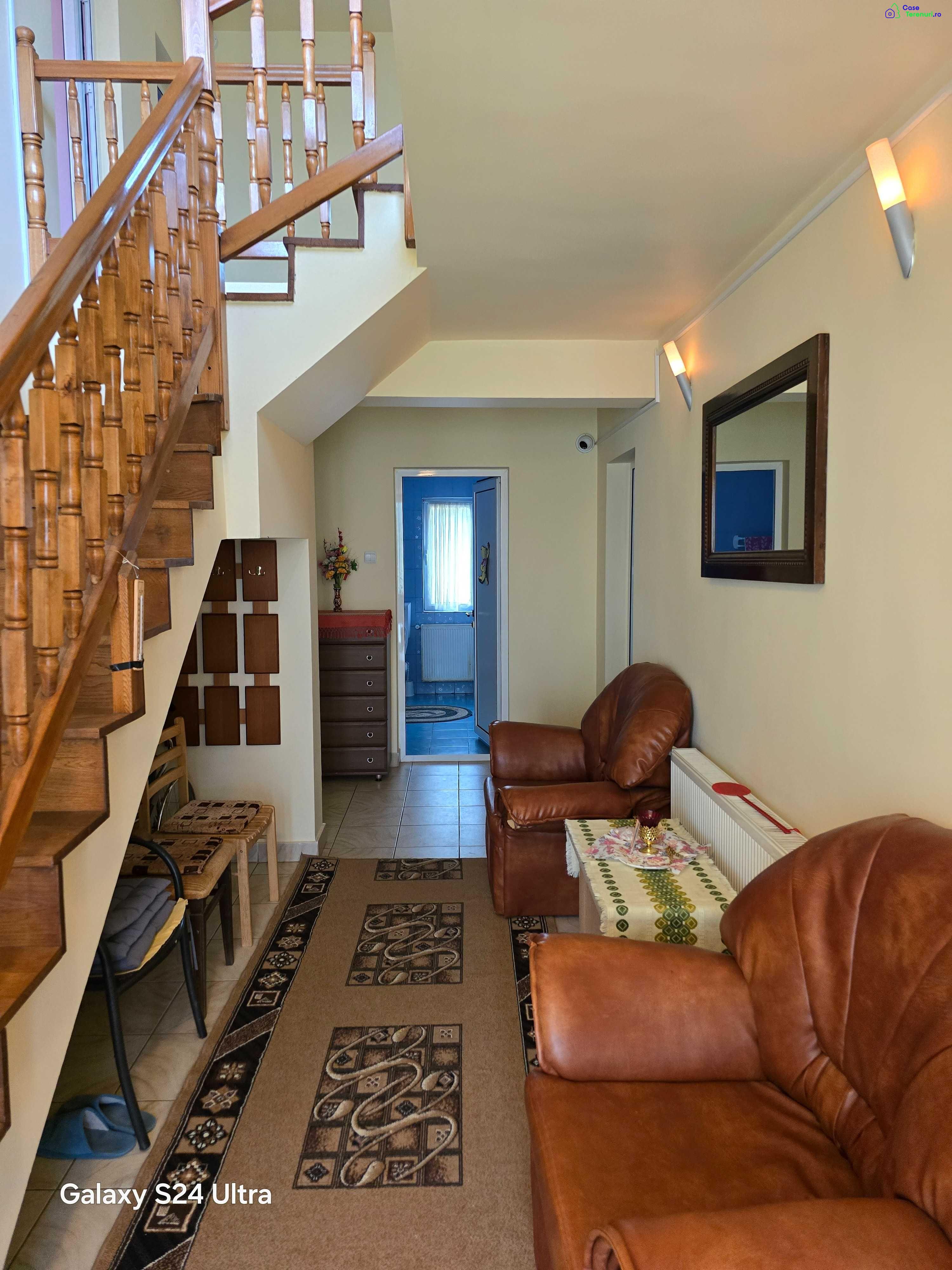 Imobil situat in comuna NICORESTI, judetul GALATI, la strada principala.Distante : pana la Tecuci - 14 km, pana la Focsani - 38 de km, pana la Galati - 92 de km.Scoala la cca 450 de metri, magazine in apropiere.Total suprafata teren cca 3000 mp. Casa are 120 mp amprenta la sol. Sunt si trei anexe, una cu destinatie de magazie, alta cu destinatie de adapostarie a animalelor si pasarilor de curte si una care are rol de camera tehnica pentru centrala termica.Gradina cu vie si pomi fructiferi.Curtea cu gazon, flori si multi pomi fructiferi.An finalizare constructie = 2004.PARTER : 3 camere (4,5/4,5) + baie/toaleta (3/3) + bucatarie (4,5/3,5) + debara (1,3/4,5) + hol + camera tehnica centrala peleti.ETAJ : 4 camere (3,5/3,5) + baie/toaleta (2/2) + hol + balcon.Grosime pereti = min. 50 cm, racoros vara si confortabil in anotimpul rece.In plus, casa a fost izolata termic pe exterior si zugravita pe exterior, in martie 2023.Casa acoperita cu tigla (pod generos).Dusumea acoperita cu parchet sau cu gresie, dupa caz.Scara interioara din lemn.Curtea, gradina, zona destinata pasarilor sunt delimitate separat cu gard din scandura vopsita.In plus, pentru cei amatori, exista si posibilitatea vanzarii a aproximativ 5 hectare de teren, atat intravilan cat si extravilan arabil.Utilitati : energie electrica, internet, televiziune, centrala termica, apa curenta din reteaua comunala, fantana proprie cu hidrofor etc. Centrala termica Biodom Double Fan 34, achizitionata si montata in martie 2023. Mai sunt si doua boilere electrice pentru obtinerea apei calde la nevoie.Calcul preturi minimale – principale dotari :Casa – 240 mp (desfasurat) x 950 euro / mp = 228.000 EURO ;Anexa 1 – 55 mp x 600 euro / mp = 33.000 EURO ;Anexa 2 – 50 mp x 350 euro / mp = 17.500 EURO ;Fantana 22 m adancime = 3.800 EURO ;Sistem supraveghere video cu 8 camere = 2.800 EURO ;Centrala termica + instalare = 4.500 EURO ;Teren intravilan curti-constructii 3000 mp = 3.500 EURO ;Gard cu fundatie din ciment – peste 200 metri = 4.500 EURO ;Izolare termica exterioara = 1.900 EURO ;Masina tuns gazon plus multe alte scule = bonus ;Pomi fructiferi = bonus ;Camera tehnica centrala termica = bonus ;Instalatie hidrofor + pompa submersibila = bonus ;Stoc peleti pentru centrala pentru o iarna = bonus ;Instalare internet prin fibra = bonus ;Racordare la energie electrica = bonus ;Racordare la reteaua comunala de apa = bonus ;Alte utilitati si mobilier = bonus ;TIMP, NERVI, DISPONIBILITATE PE DURATA CONSTRUCTIEI bonusTOTAL = 299.500 EUROReducere = - 100.500 EUROPret final = 199.000 EURO.Pentru orice alte relatii : 07**********06 si 07**********37.