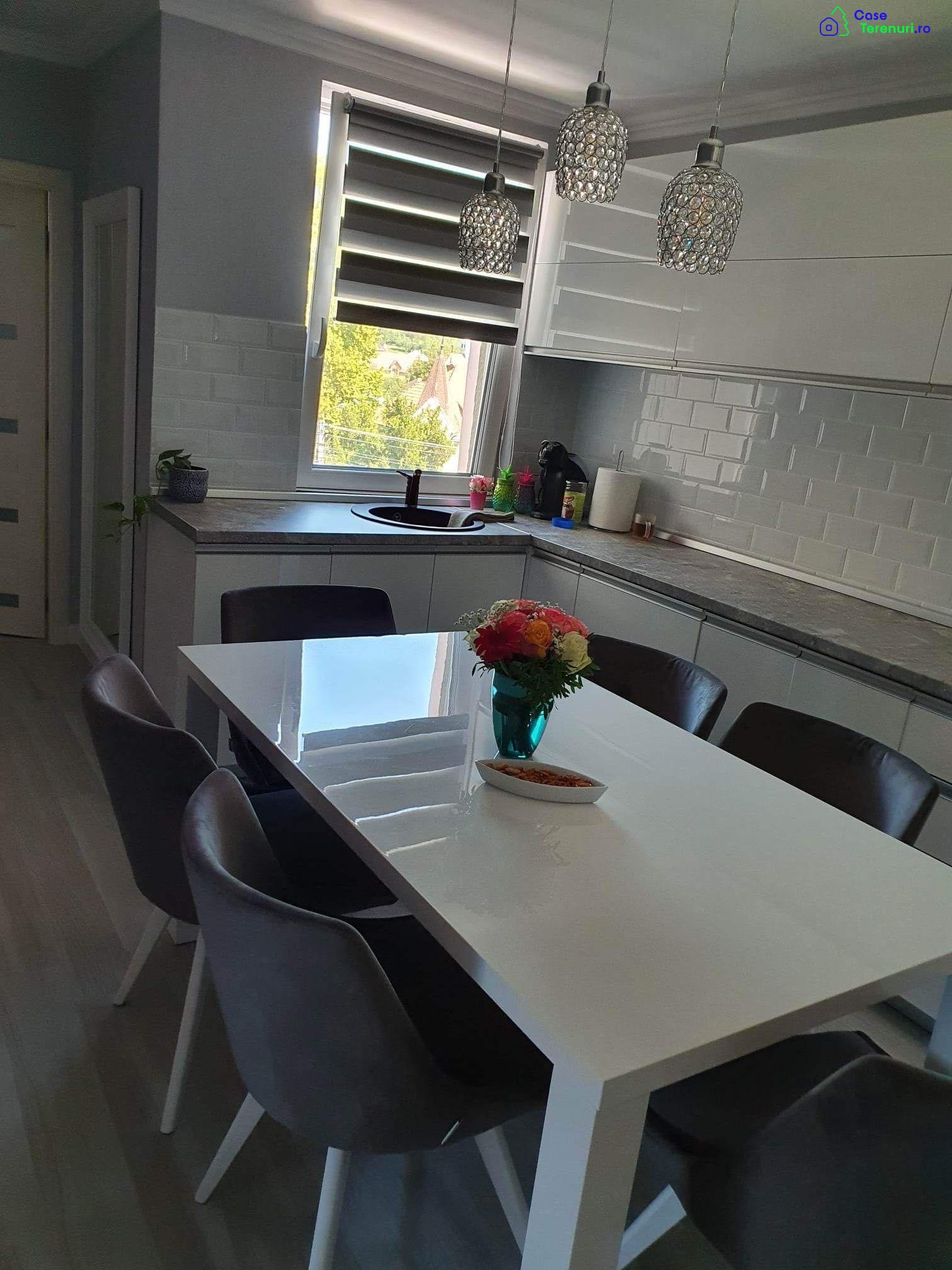 Apartament la cheie ,renovat complet în urmă cu 4 ani cu materiale de cea mai bună calitate, compus din 2 dormitoare ,sufragerie ,bucătărie ,baie și terasă închisă cu geam termopan ,folosită ca și spațiu de călcat haine,incalzire in pardosea in tot apartamentul cu termostat inteligent , sapa noua, polistiren extrudat sub sapa de 5 cm+ folie termoizolatoare, izolat și in pod cu sapa asfaltica ,izolat pe partea exterioara cu polistren,termopane ,frigider, cuptor, microunde, plita electrica, mașina de spălat vase, mașina de spalat haine toate încorporate în mobila de bucătărie făcută la comanda, instalație noua de curent, apa,gaz si centrală noua!Strada Miron Cristea .Blocul a intrat in proiect de reabilitare termica, acoperiș nou.Propun si un schimb cu casa în Bistrița +diferența de bani .
