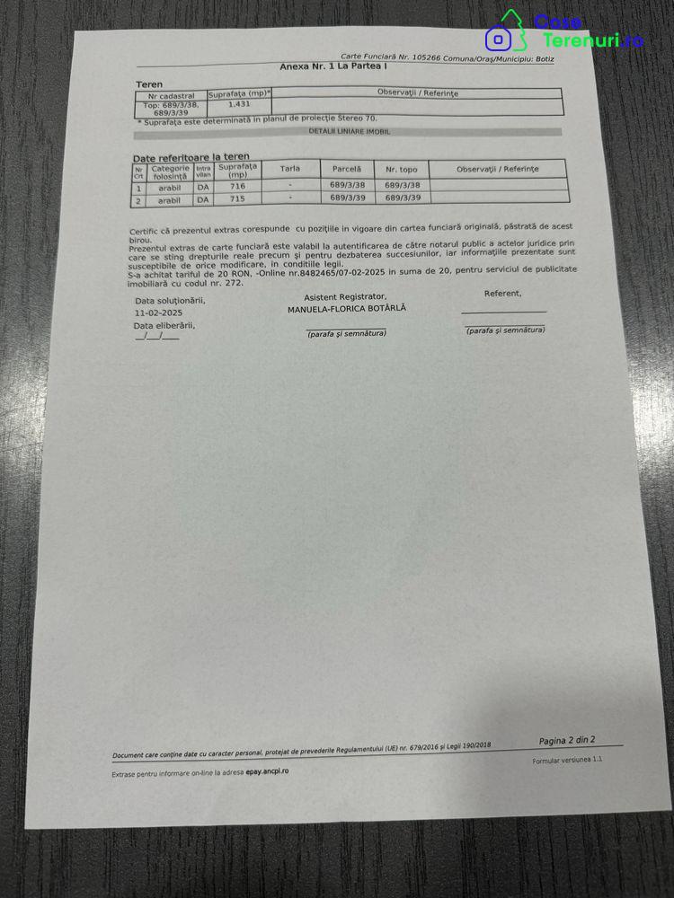 Vand teren intravilan cu o suprafata de 1431 mp, utilitati in apropiere, e situat la 200 metri de strada principala si se afla la iesire din Botiz catre Baia Mare.Mai multe detalii la telefonPret: 4200€/arul negociabil