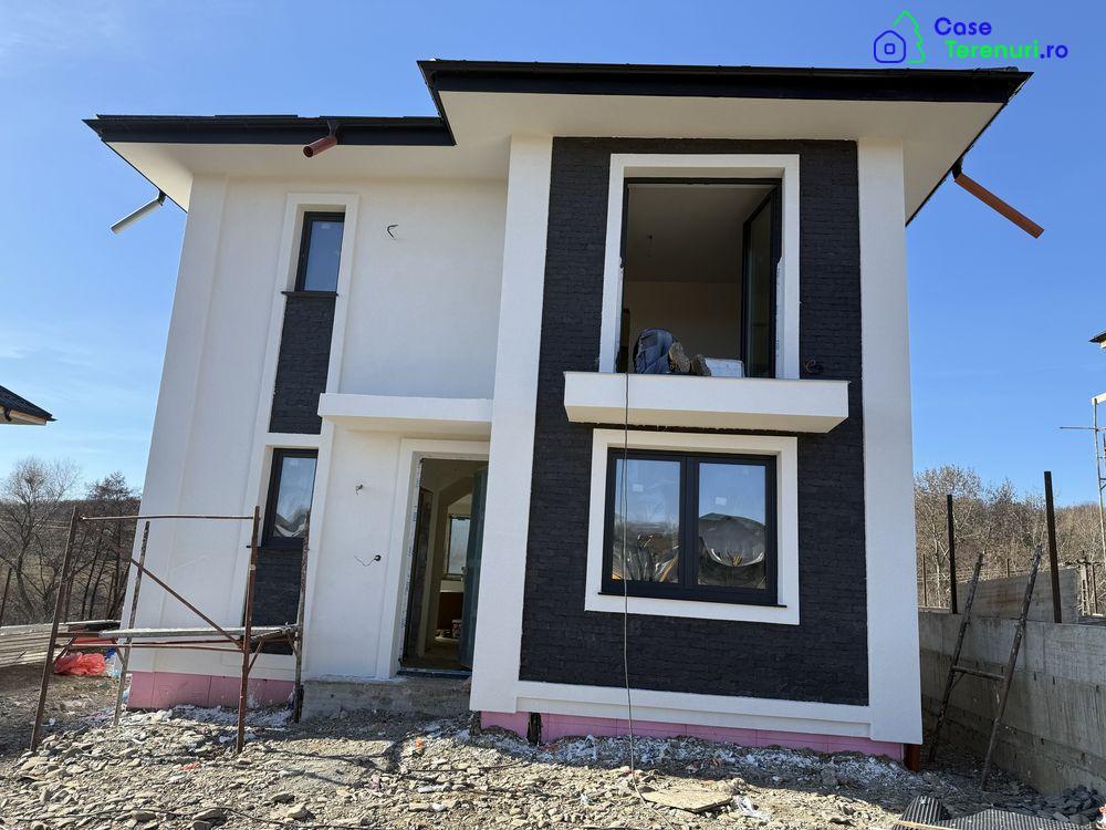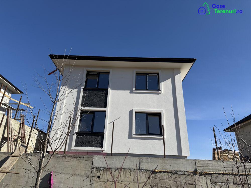 Va propunem spre vanzare casa dispusa pe 3 nivele + pod si anume:-subsol: beci-parter: living, bucatarie, baie, hol + terasa acoperita-etaj: 3 dormitoare, baie, si posibilitate de dressing + balcon-pod: spatiu de depozitareSuprafata construita 210 mp.Suprafata teren, inclusiv amprenta casei aprox. 310mpDetalii tehnice:Structura din beton armat si caramida portanta Porotherm Robust25, placa de beton peste subsol, peste parter si peste etaj.Etajul este intreg si nu mansardat.Finisaje si dotari premium dupa cum urmeaza:Incalzire in pardoseala parter si etajObiecte sanitare incastrate, montate pe cadruScara interioara placata cu granitTamplarie pvc VEKA 7camere cu 3 randuri de garnituri de etansare si sticla tripan, pervaze granitInvelitoare din tabla tip Lindab mataTermosistem cu polistiren 10cm, EPS80Ancadramente la ferestre, usi si colturi, iar unele zone de fatada vor fi placate cu caramida aparenta conform prezentareIluminat pe fatada casei si iluminat ambiental curteTerasa acoperita in suprafata de aprox. 25mpLocuri de parcare, trotuare si terasa pavate cu pavele vibropresate.Perimetrul va fi imprejmuit cu gard si poarta acces montata pe roleUtilitati: energie electrica, gaz, apa si canalizare.Pretul afisat este pentru stadiul complet finisat.Locatie: strada Costica Artenie, zona Buciumeni