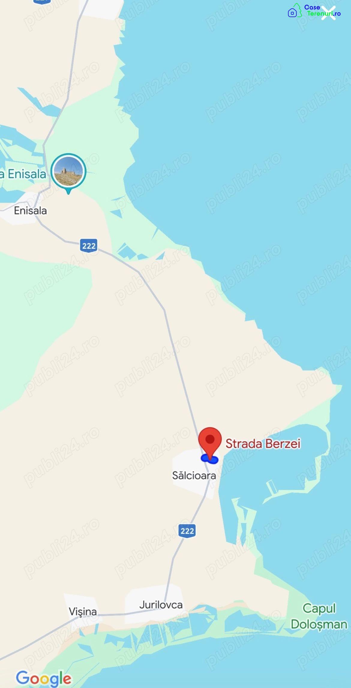 Ofer spre vânzare teren intravilan 1500 m2 situat în pitorescul sat Salcioara strada Berzei, ascuns in Delta Dunarii, Judet Tulcea. Situat în zona turistica în apropierea cetătii medievale Enisala ,la doar 3 km de Jurilovca si doar 50m de Lacul Razim .Deschidere de 21m la strada, racordat la retea de apa, canalizare.Potential de investitie: Oportunitatea ideala pentru persoane interesate de investiti imobiliare, pentru cei interesati sa achizitioneze un teren pretabil constructiei unei case de locuit departe de zgomotul urban sau începutul unui business ín domeniul turistic., find situata foarte aproape de iesirea la apa a Lacului Razim . Zona este În continua dezvoltare din punct de vedere turistic, făcând parte din Delta Dunării .