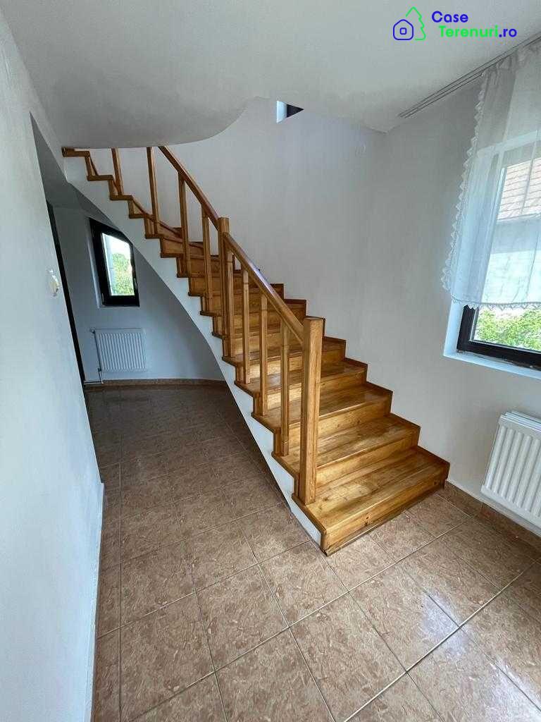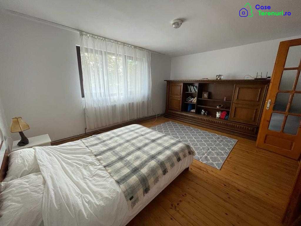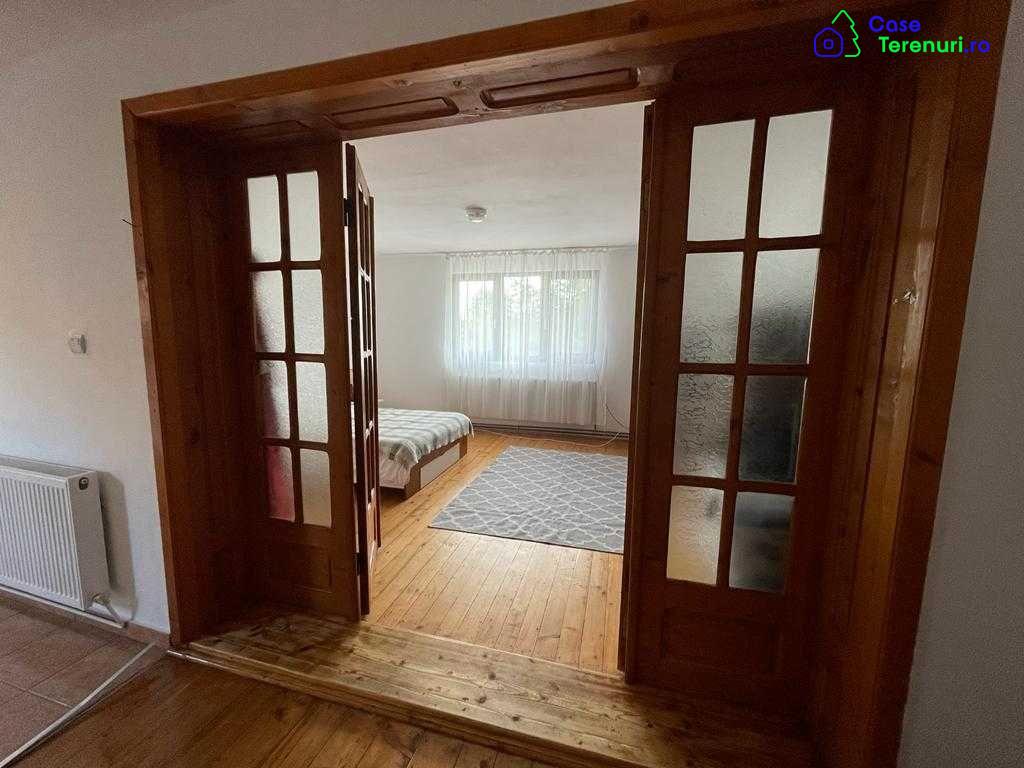 Casa spatioasa cu gradina, 1200m2 in total, geamuri tripane, un balcon si o terasa cu privire catre munti si padure, 3 camere, doua holuri mari, 2 bai, o bucatarie, un livingroom mare, plus o a doua casa adiacenta cu o camera, recent renovata. Toate utilitatile, strada departe de trafic intens, zeci de pomi fructiferi si posibilitate de gospodarie, inclusiv doua pivnite. Centrala pe gaz si sistem pe lemne daca este necesar.Mai multe detalii si fotografii prin telefon sau mesaj.Rog seriozitate.
